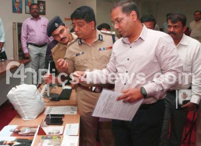 Event Description : Bhaskar Rao, Bengaluru City Police Commissioner with Sadeep Patil, Joint Commissioner of City Police and CCB chief inspecting the seized drugs during a press by Central Crime Branch Bengaluru Anti Narcotics Wing, the press conference was held at Bengaluru City Police Commissioner Office, in Bengaluru on Friday 13th December 2019