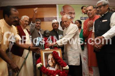 Photo Caption : Prof Ananth Kumar, JNU New Delhi with Prof Rajkumar Jain, Michael B Fernandes, Ex MLA, BT Lalitha Nayak, Former Minister, BR Patil, Ex MLA and paid tribute to Mahatma Gandhi and Kastur Ba during the 150th Birth Anniversary of Mahatma Gandhi and Kastur Ba at Gandhi Bhavan, in Bengaluru on Saturday 14th December 2019