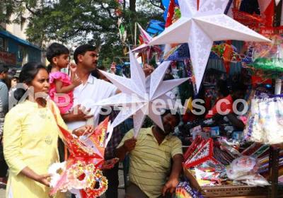 Photo Caption : People shopping Christmas decoration items for the upcoming Christmas Festival, in Bengaluru on Sunday 15th December 2019