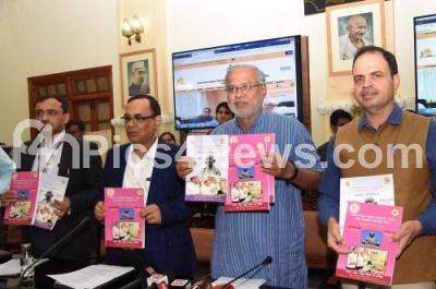 Photo Caption : Minster S Suresh Kumar releasing the monthly report on Sakala project with Beluru Sudarshan, Chief Minister E Administrative Adviser, Rajiv Chawla, E Administrative Secretary and others at Vidhana Soudha, in Bengaluru on Monday 16th December 2019