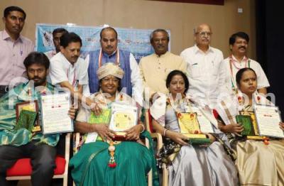 Photo Caption : Dr. Aralumallige Parthasarathi presenting Ram K Hanumanataiah and Hebbagodi Gopal Datti book award to Madhusudan BN , Pushpa Basavaraju and Sridevi Krishnappa and felicitated to Rajyotsava awardee Dr. Geeta Ramanujam at a program organised by Budda Basava Gandhi Samskrutika Trust at Sheshadripuram, in Bengaluru on Tuesday 17th December 2019 Pics: www.pics4news.com