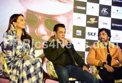 Event Description : Actors Salman Khan, Prabhu deva, Sudeep and Sonakshi Sinha during their new movie Dabangg 3 promotional event, in Bengaluru on Tuesday 17th December 2019