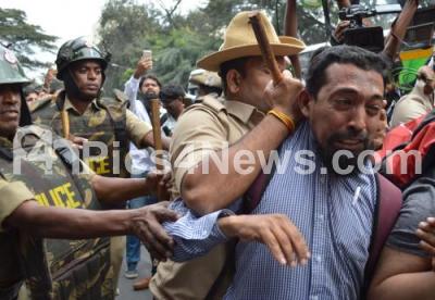 Photo Caption : Police detain a protester during a demonstration held against new citizenship law at Town Hall, in Bengaluru on Thursday 19th December 2019