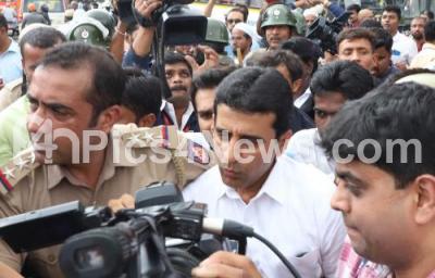 Photo Caption : MLA Rizwan Arshad being detained by the police during a demonstration held against new citizenship law at Town Hall, in Bengaluru on Thursday 19th December 2019