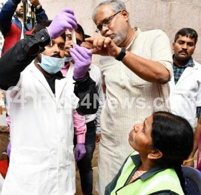 Minister S Suresh Kumar at the inauguration of free health checkup camp for Paurakarmika workers at BBMP Premises, in Bengaluru on Saturday 21st December 2019
