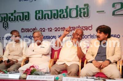 Photo Caption : Former Union Minister Mani Shankar Aiyar with MLA Ramesh Kumar, Former MP Narayanswamy, Dr S M Vijaya Anand, VY Gorphade and L K Atish, General Secretary, Rural Development. Dept. at the inauguration of Founders Day of Karnataka Panchayth Raj Parishat at Gandhi Bhavan, in Bengaluru on Sunday 22nd December 2019