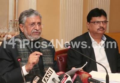 Photo Caption : Sushil Kumar Modi Deputy CM Bihar and Niranjan Pujari Cabinet Minister Finance and Exercise Orissa addressing media during meeting of Group of Ministers (GoM) on IT for GST implementation at a private hotels in Bengaluru on Monday 23rd December 2019