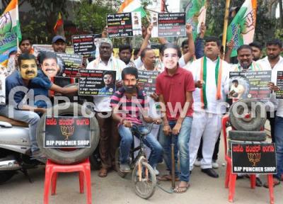 Photo Caption : Members of Bengaluru City Youth Congress Protesting against BJP MP Tejasvi Surya and for their misbehave statement on CAA protesters the protest was held at Gandhi Statue Anand Rao Circle, in Bengaluru on Tuesday 24th December 2019