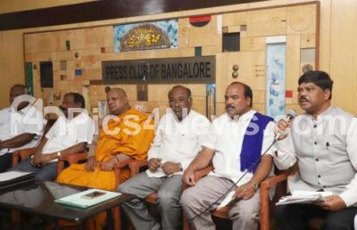 Photo Caption : Banthe Vatajyothi, Karnataka Buddha Bhokka Sangha with Marappa, State President Dalitha Sangarsha Samithi Samathavada, Mohan Raju State Convener Dalitha Sangarsha Samithi Bheemavada and others during a press conference at Press Club in Bengaluru on Tuesday 24th December 2019