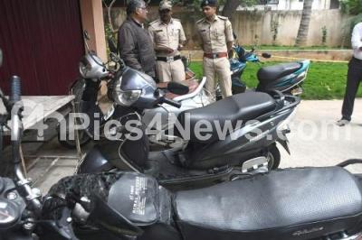 Event Name : Police personals inspects the burnt two wheeler in Bengaluru