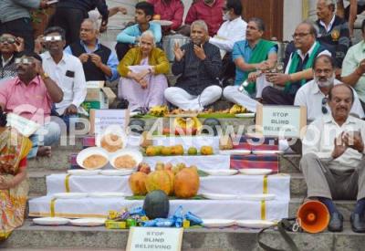 Photo Caption : People Saying no to superstition and Stop Blind Believing at Town Hall in Bengaluru on Thursday 26th December 2019