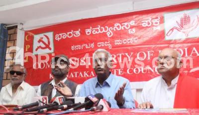 Com Dr Siddanagowda Patil CPI National Council Member Com D Raju CPI General Secretary Com Saathi Sundaresh State Secretary and CPI leaders addressing press conference at CPI office in Bengaluru on Friday 27th December 2019