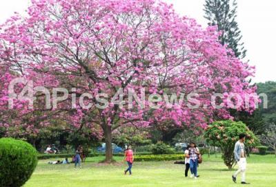 Photo Caption : Tabebuia rosea flowers blooming at Cubbon Park attracts the visitors, in Bengaluru on Friday 27th December 2019