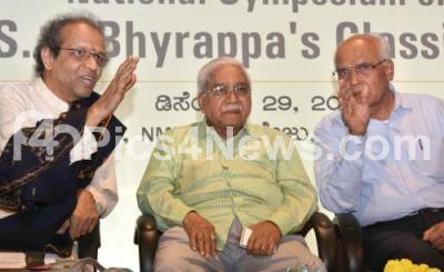 Photo Caption : Jnanapeetha Awardee Dr Chandrashekar Kambar with Shatavadani Dr R Ganesh, Dr S L Byrappa during national seminar on "Parva" at NMKRV College, in Bengaluru on Sunday 29th December 2019