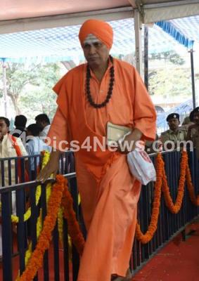 Photo Caption : Sri Shivarudra Swamjij of Beli Mutt arriving at National College Grounds to pay her last respect to Sri Vishwesha Theertha Swamiji of Pejawar Mutt, who passed away today at a private hospital, in Udupi , his remains were bought to National College Grounds for public viewing, in Bengaluru on Sunday 29th December 2019