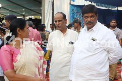 Photo Caption : MP Shobha Karandlaje and MLA Gopalaiah at National College Grounds to pay their last respect to Sri Vishwesha Theertha Swamiji of Pejawar Mutt, who passed away today at a private hospital, in Udupi , his remains were bought to National College Grounds for public viewing, in Bengaluru on Sunday 29th December 2019