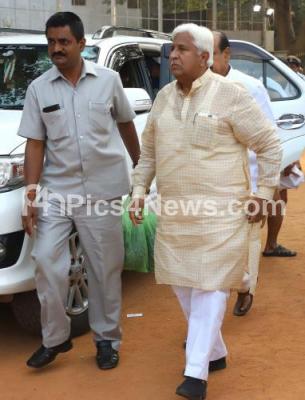 Photo Caption : Former Minister HK Patil arriving at National College Grounds to pay their last respect to Sri Vishwesha Theertha Swamiji of Pejawar Mutt, who passed away today at a private hospital, in Udupi , his remains were bought to National College Grounds for public viewing, in Bengaluru on Sunday 29th December 2019