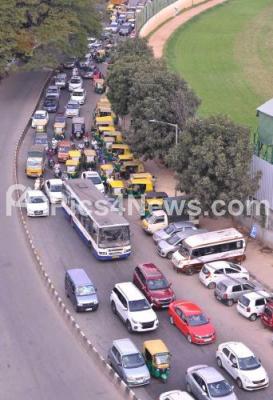 Photo Caption : Traffic Jam near Anand Rao Circle due to ASHA workers protest rally in Bengaluru on Friday 3rd January 2020