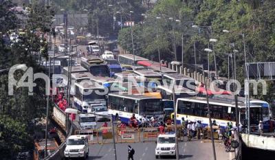 Photo Caption : Traffic Jam near Anand Rao Circle due to ASHA workers protest rally in Bengaluru on Friday 3rd January 2020