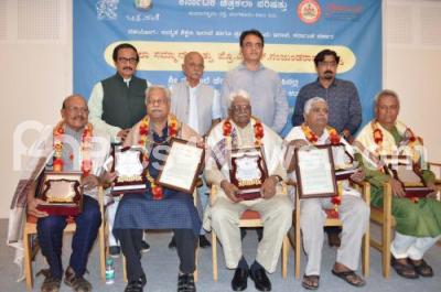 Photo Caption : Dr CN Ashwathnarayan Prof Prabhakar Kolta Sri M Krushnappa Chithrakalavidaru Sri HN Suresh Sri RB Bhaskaran Hireya seen at the Karnataka Chithrakala Parishathu Program in Bengaluru on Saturday 4th January 2020