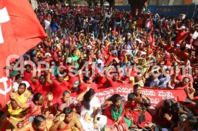 Photo Caption : Various Trade Unions organisations staged a protest at Freedom Park, as part of the Trade Unions Nationwide Strike, in Bengaluru on Wednesday 8th January 2020