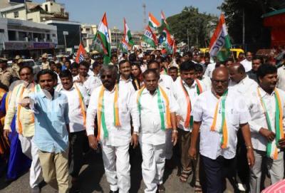 Photo Caption : Members of Indian National Trade Union Congress led by Eshwar Khandre participated in a protest rally from Congress Bhavan to Freedom Park, as part of the Trade Unions Nationwide Strike, in Bengaluru on Wednesday 8th January 2020