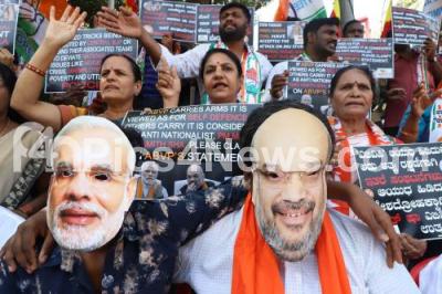 Photo Caption : Karnataka Congress workers staged a protest against the central government for the attack on the students of JNU and demanded for immediate arrest of the culprits, who orchestrated the attack, the protest was held at Gandhi Anand Rao Circle, in Bengaluru on Thursday 9th January 2020
