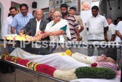 Photo Caption : Nadoja Kamala Hampana and her husband Nadoja Hampa Nagarajaiah paid tribute to Dr Chidananda Murthy, Kannada Scholar, who passed away today, in Bengaluru on Saturday 11th January 2020