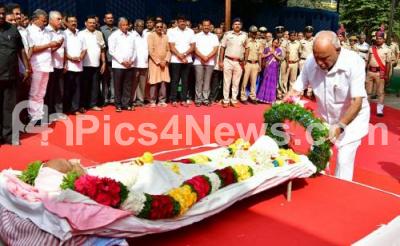 Photo Caption : CM BS Yediyurappa paying his last respect to Dr Chidananda Murthy, Kannada Scholar during his funeral program, in Bengaluru on Sunday 12th January 2020