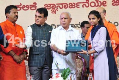 Photo Caption : CM BS Yediyurappa distributed free laptops to the students during Swami Vivekananda Jayanti celebrations, also seen are DCM Dr Ashwath Narayana, Mayor Gautham Kumar, MLA Vishwanth and others at Sri Kanteerava Stadium, in Bengaluru on Sunday 12th January 2020