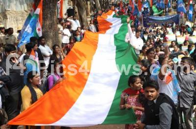 Event Description : Students from various colleges under the aegis of National Students Union of India (NSUI) hold a national flag, to condemn the assault on the students of JNU and Jyoti Nivas College, the rally was held from Gandhi Statue, Anand Rao Circle to Freedom Park, in Bengaluru on Monday 13th January 2020