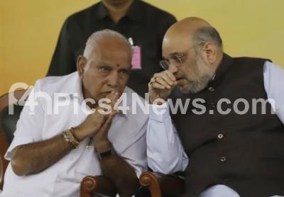 Photo Caption : Union Home Minister Amit Shah in discussion with CM BS Yediyurappa during the Vedanta Bharati “Viveka Deepini Mahasamarpane†event at Sri Krishnavihar, Palace Ground, in Bengaluru on Saturday 18th January 2020