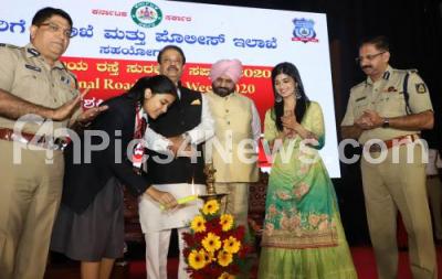 Photo Caption : Bhaskar Rao, Benagluru City Police Commissioner with MLA Uday Garudachar, Dr BR Ravikanthe Gowda, Additional Commissioner of Police (Traffic), Actress Aditi Prabhudeva and a student inaugurated the valedictory program of 31st National Road Safety week at Town Hall, in Bengaluru on Tuesday 21st January 2020