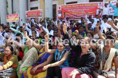 Members of All India Gramin Dak Sevaks Union staged a protest to fulfill their various demands at Town Hall, in Bengaluru on Wednesday 22nd January 2020