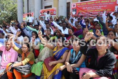 Photo Caption : Members of All India Gramin Dak Sevaks Union staged a protest to fulfill their various demands at Town Hall, in Bengaluru on Wednesday 22nd January 2020