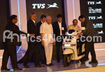 Event Description : Nitin Gadkari, Union Minister of Road Transport and Highways and Micro, Small and Medium Enterprises with CM BS Yediyurappa, Home Minister Basavaraj Bommai, Venu Srinivasan, Chairman TVS Motor Company and others launched the TVS iQube electric scooter at a private hotel, in Bengaluru on Saturday 25th January 2020