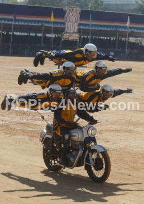 Photo Caption : Indian army Motorcycle display team "Tornadoes" perform during Republic Day celebrations at Manekshaw Parade Ground, in Bengaluru on Sunday 26th January 2020