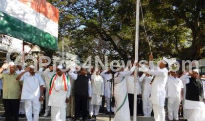 Photo Caption : KPCC President Dinesh Gundurao, Former CM Siddaramaiah, Congress leaders M Veerappa Moily, Mallikarjuna Kharge and others participating in 71st Republic Day celebrations at KPCC, in Bengaluru on Sunday 26th January 2020