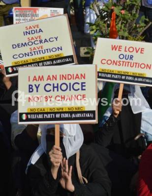 Photo Caption : Muslim men and women and various organizations staged a protest against Central Government for implementing CAA and against NRC and demanded for saving Indian Constitution at Town Hall, in Bengaluru on Tuesday 28th January 2020