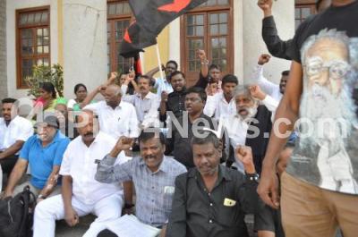 Event Description : Members of Dravida Vidudhalai Kazhagam (Karnataka) protesting against Actor Rajanikanth for his statement on Revolutionary Poet Periyar, the protest was held at Town Hall, in Bengaluru on Wednesday 29th January 2020