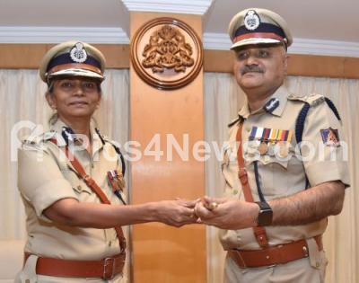 Photo Caption : Praveen Sood is seen taking charge as DGP and IGP, from Neelamani N Raju, the outgoing DGP and IGP at DGP Office, in Bengaluru on Friday 31st January 2020