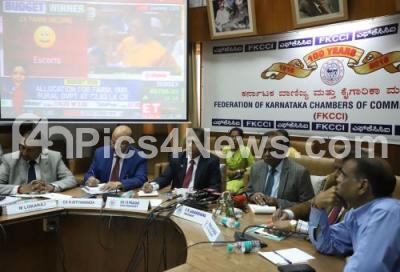 FKCCI President CR Janardhana, CA IS Prasad, Vice President FKCCI, CA N Nityananda and others watching live Budget 2020 session of the Central Government, screened at FKCCI, in Bengaluru on Saturday 1st February 2020