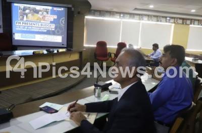 Photo Caption : R Raju , President KASSIA with KASSIA members watching live Budget 2020 session of the Central Government, screened at KASSIA, in Bengaluru on Saturday 1st February 2020