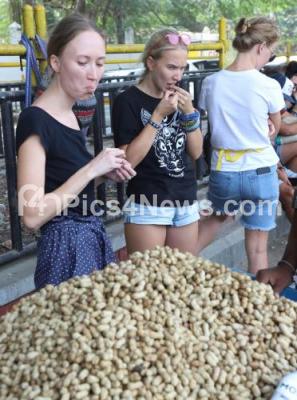 Russian Tourists Enjoy the Indian Groundnuts