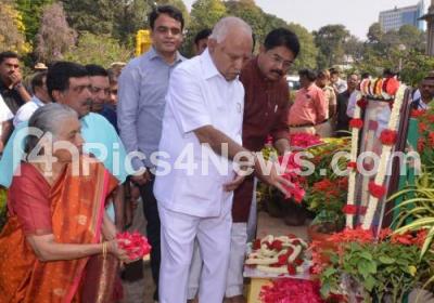 Photo Caption : CM BS Yediyurappa with DCM Ashwath Narayan, Ministers R Ashok and others floral tribute to the portrait of Kengal Hanumanthaiah, Former Karnataka Chief Minister, on the occasion of 112th Birth Anniversary program of Kengal Hanumanthaiah at Vidhan Soudha, in Bengaluru on Monday 10th February 2020