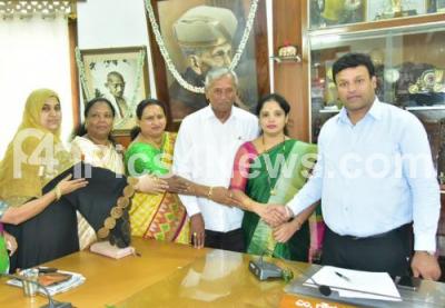 Mayor Goutham Kumar greeting Mamatha Vasudev, newly elected Chairman of Accounts Standing Committee and its members at BBMP Head Office, in Bengaluru on Wednesday 12th February 2020