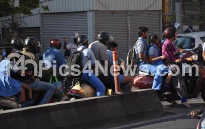 Children being dropped by their parents to the schools as every day, even after the pro Kannada organisations called for a bandh demanding the Sarojini Mahishi report be implementation which recommends a certain percentage of job to Kannadigas in public sector undertakings (PSUs), private companies and multinational companies, in Bengaluru on Thursday 13th February 2020