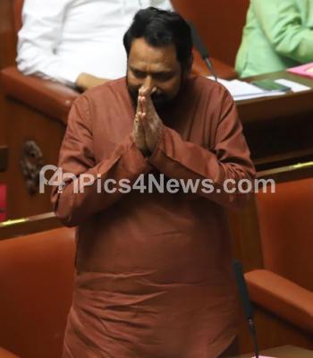 Photo Caption : DCM Laxman Savadi seen after taking oath as the MLC during the Council Session at Vidhan Soudha, in Bengaluru on Tuesday 18th February 2020