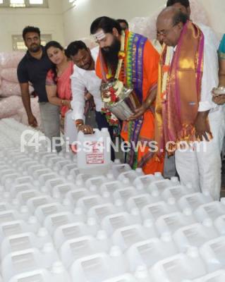 Photo Caption : Former Minister Krishnaiah Shetty with Maharshi Anand Guruji and devotees distributing 40,000 liters Gangajal to all Karnataka Shiva Temples on the eve of Maha Shivaratri Festival near Gavi Gangadhareshwara Temple, in Bengaluru on Wednesday 19th February 2020