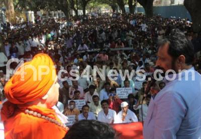 Photo Caption : DCM Laxman Savadi addressing the protesting members of KSRTC Employees Fundamental Rights Thinking Committee at Freedom Park, to fulfill their various demands, in Bengaluru on Thursday 20th February 2020